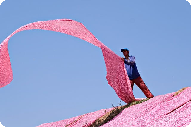 - 수건을 펼쳐서 널어 햇볕에 충분히 노출합니다.